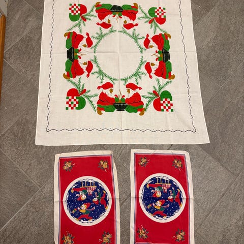 Retro , 2 stk løpere, trykt strie / jute, signerte, Jul 🎄