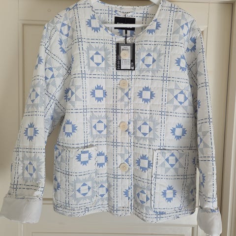 Mos Mosh Iris Ester Jacket i blå farge, størrelse 42. Den er stor i størrelsen. Min erfaring er at den er ca str 44.