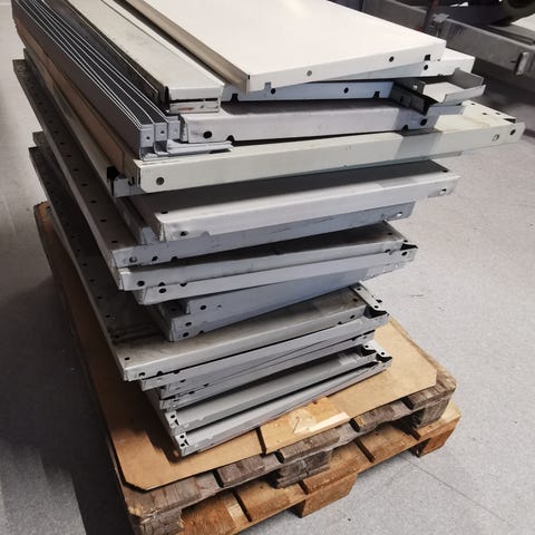 4 pakker i hver reol, 2 høyder, 2 bredder.