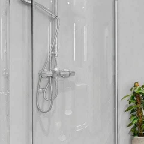 Dusjvegg i klart glass med kromramme 90x90