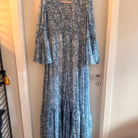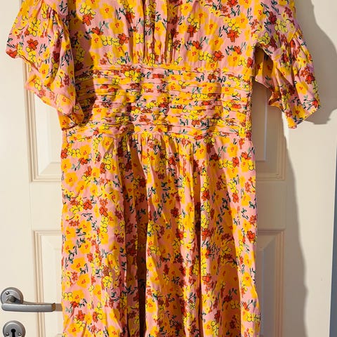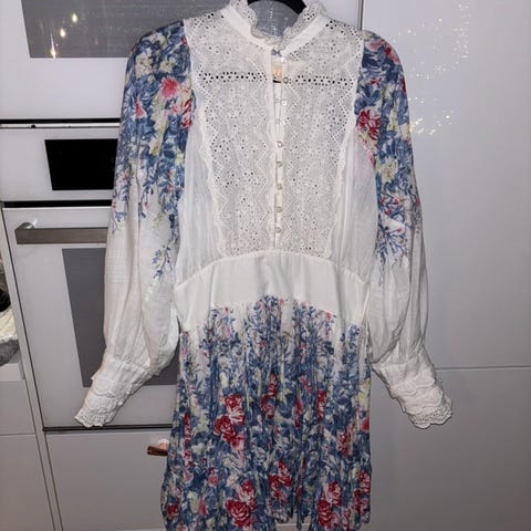 Pent og lite brukt byTiMo Sommerkjole i størrelse L med flerfarget blomsterprint. Kjolen har lange ermer og glidelås bak.