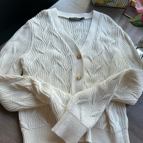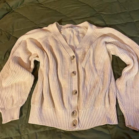 Selger denne nydelige strikket cardigan. Den er i god stand, og har fine detaljer - ta kontakt dersom du lurer på noe😊