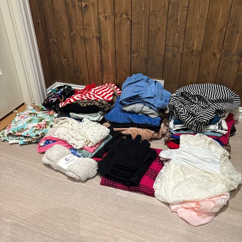 Klespakke med blant annet kjoler, skjørt, topper og bukse. Strl XS. Er flere plagg enn på bildene. Send melding dersom du ønsker flere bilder