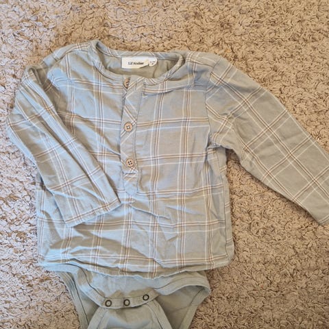 Penklær fra Wheat og Lil’ Atelier. Ny beige chinos fra Lil’ Atelier (str.86) og nydelig skjortebody fra Wheat (str.80). Bodyen er brukt en gang og fremstår som ny, buksen er ny med tags.
