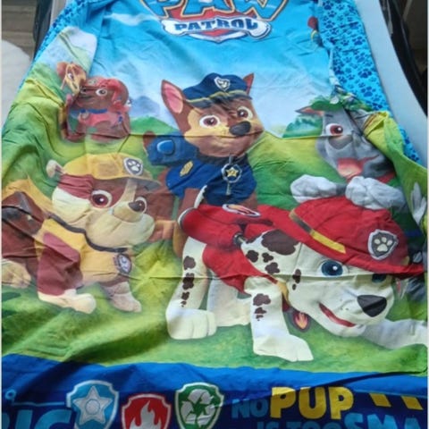 Jeg legger ved et dynetrekk med bamse gratis (godt bruk, men uten flekker og hjul).