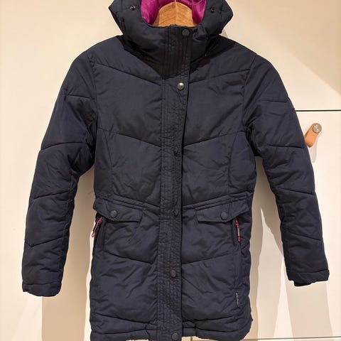 Vinterkåpe med to lommer foran, avtagbar hette, stramming i livet