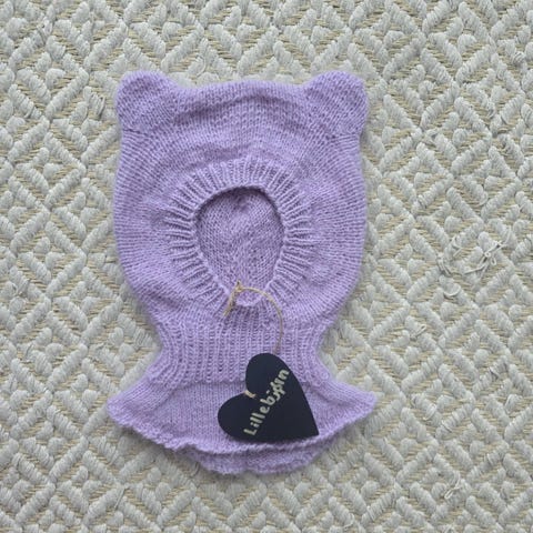 Lua blir strikket i soft slik mohair og merino som gir veldige mjukt og fint produkt 🐻 kanten rundt ansiktet blir strikket i merino ull.