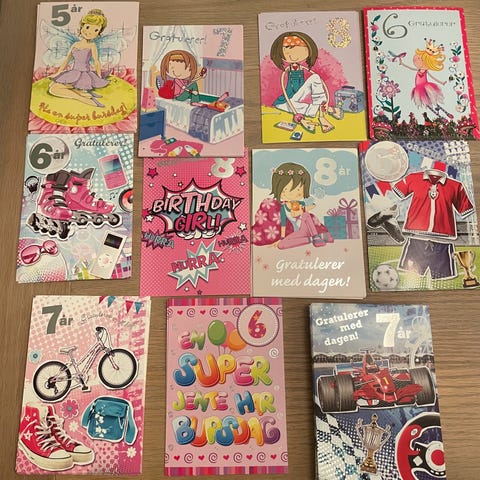 Har 4 stk helt nye bursdagskort, rosa