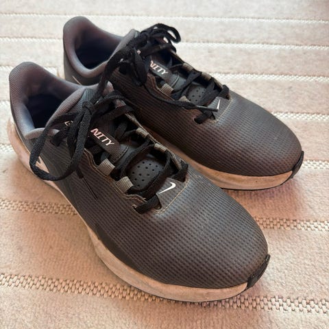 Nike Air Max sko i størrelse 38, svart farge. Skoene har en mesh- og syntetisk overdel for ventilasjon og støtte. Sålene har et mønster for grep og komfort ved bruk. Egnet for generell bruk innen ulike aktiviteter.