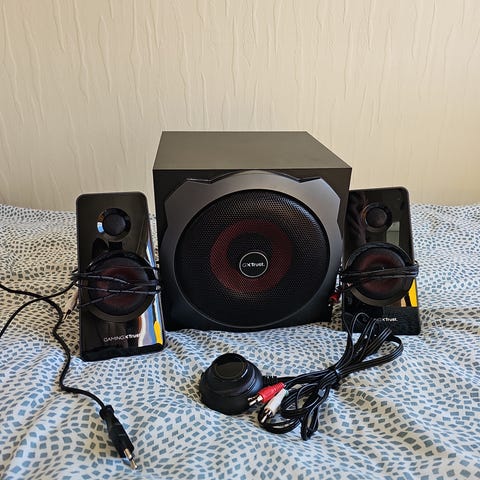 Selger sett med Trust høyttalere pga flytting.