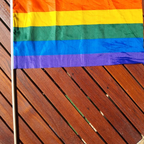 Håndbrodert prideflag regnbue