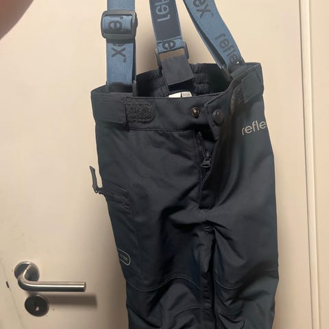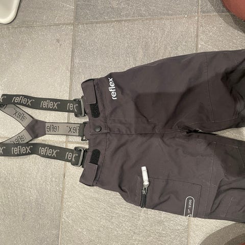 Den aller beste utebuksa for høst og vår (og milde vinterdager)! Den har synlig bruksslitasje på knær, rompe og nederst på beina, men den har ingen hull og fremstår ganske pen. Alle sømmer, strikker (unntatt fotstrikkene som har synlig slitasje), glidelåser, knapper og borrelåser er i topp stand. Inni er det sydd i en lapp som kan benyttes til reparasjon av hull hvis behovet skulle oppstå.