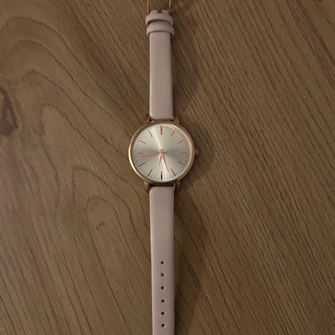 Dameklokke, farge: hvit/gull. Brukt et par ganger, så den er i god stand. Trenger nytt batteri.