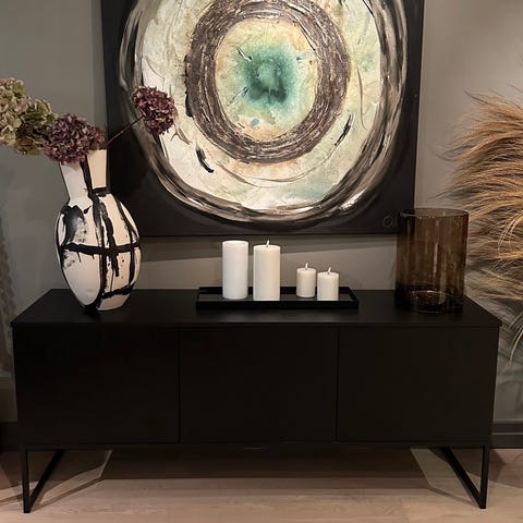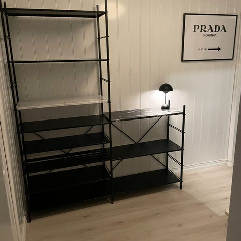 Hyllene er i sin tid kjøpt hos Eske interiør, pris rundt 20.000,-