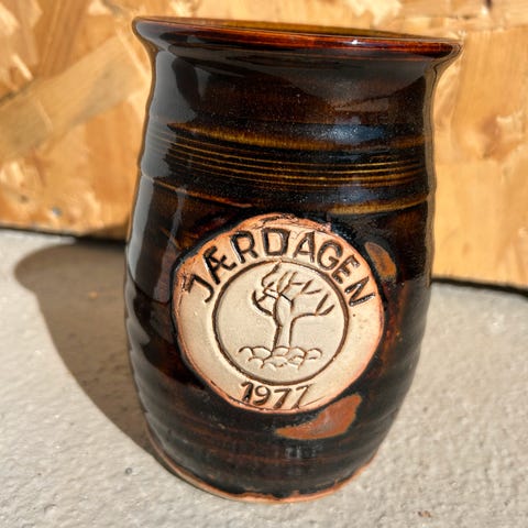 Jeg selger herved denne gamle og flotte glassmuggen med 4 tilhørende glass. Vil tippe at de er fra starten av 1900-tallet. Velholdt uten skade. Selges for 350 kroner tilsammen.