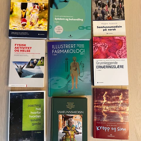 Pensumbøker for fysioterapi, kan selges som en pakke på 950 kr