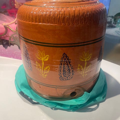 Drikkebrikke i keramikk.