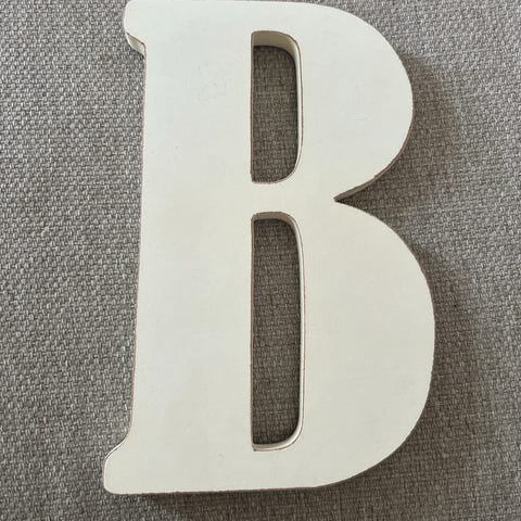 Bokstaven L, 29×19 cm, som kan henges på vegg + 2 veggknotter.