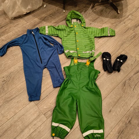 regnfrakk, størrelse 98-104, uten hull eller slitasje