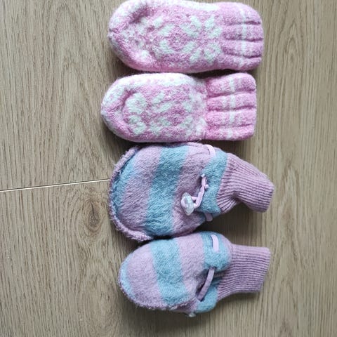 Pene, myke, stripete rosa/grå tøfler i 100% merinoull selges. De er i strl 70 og vil holde babyen din god og varm på føttene. Selges for 100,-