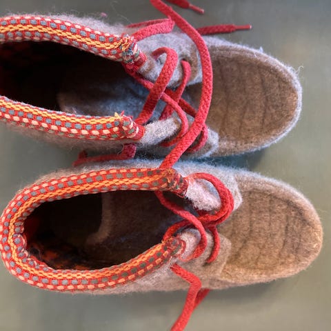 Filtet sko av 100% ren, naturlig ull i fargen rød.