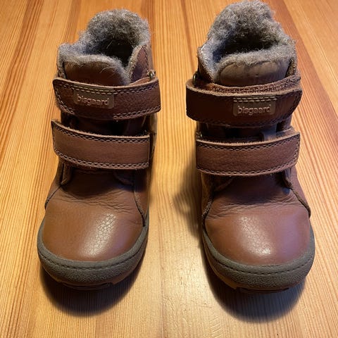 Bisgaard sko. Semsket skinn utenpå, og glatt skinn inni. De er hele og fine, men trenger en runde skokrem 😅