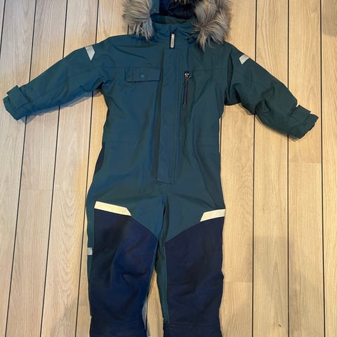 Vinterdress i størrelse 3 år. Normale bruksmerker (godt dokumentert på bildene) Mangler strikk på ene foten og er ganske slitt på andre foten. Dette kan enkelt byttes ut. Dressen er god og varm. Vi har ingen røyk eller dyr i hus.