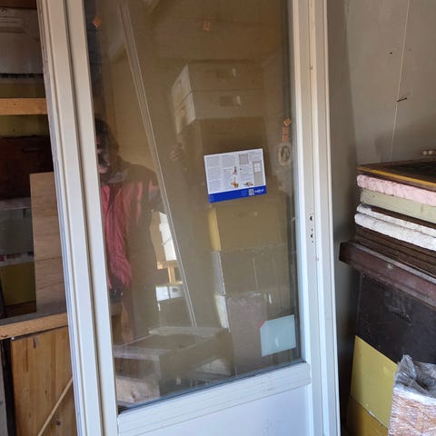 Fått noe bruksmerker. Stått midlertidig montert grunnet feil hengselretning