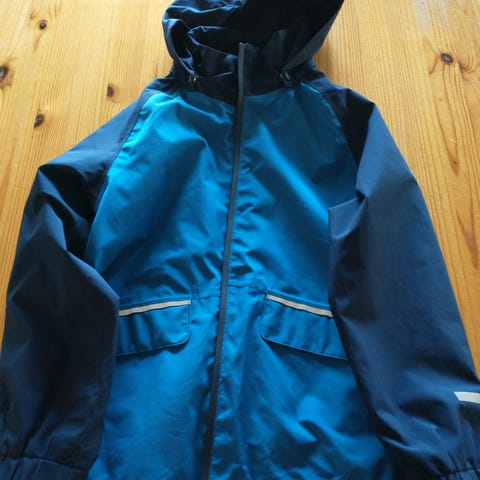 Blå allværsjakke fra Friends i størrelsen 116. Usikker på om vi i det hele tatt har brukt denne. Ingen røyk eller dyr i hus. Jakken er lett i vekt.