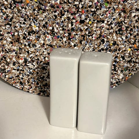Ubrukt salt- og pepperbøsser i søt ugleutforming. Laget av metall.