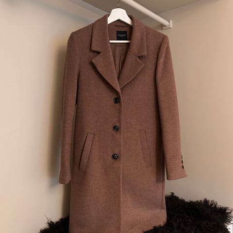 Selected Femme kåpe i fargen grå, størrelse 34 for kvinner. Jakken har en klassisk design med knapper foran og to lommer
