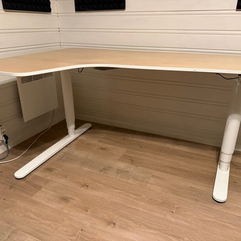 Flott og lite brukt skrivebord kjøpt fra Komplett selges. Elektrisk hev/senk. Flott eikelaminat utførelse. Solid konstruksjon.