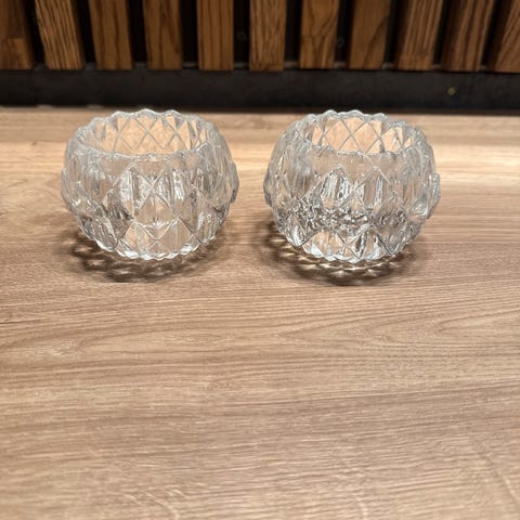8 stk. T- lys glass holdere selges. Fremstår som nye. 50 kr. pr. stk.