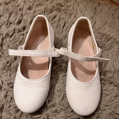 Brukt en gang inne. Er for små. Noe klin av noe slag på ene skoen inni - har ikke forsøkt og få det vekk.