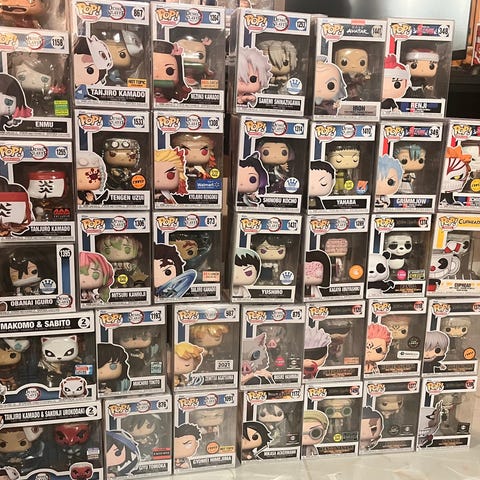 Selger demon slayer figurene mine fordi jeg har mistet interessen, vil helst selge de samlet men kan selges separat. Esker følger med, Pop figuren er også en pin.