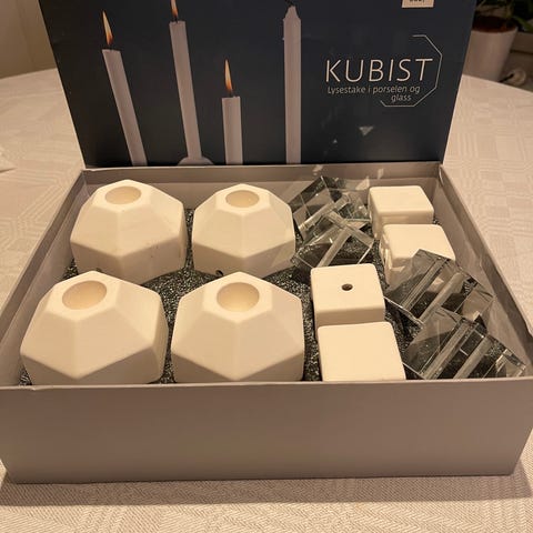 Kubist lysestake i porselen og glass fint/lite brukt, oppbevart i originaleske.