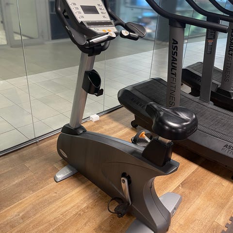 Body Sculpture treningssykkel med digital skjerm for måling av tid, hastighet, distanse og kaloriforbruk. Sykkelen har et justerbart sete for tilpasning til brukerens høyde. Sort og sølvfarget ramme i metall. Egnet for innendørs trening.