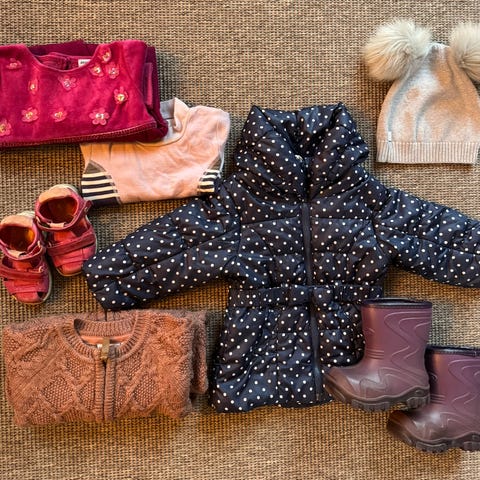 Klespakke jakke, genser og luer