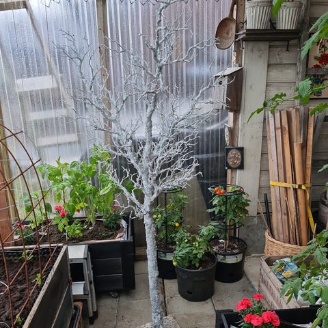 Den øverste grenen har løsnet, men det er bare å sette den nedi hullet så står den av seg selv, ellers du kan bruke lim.