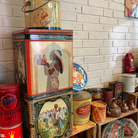 Samling eldre landhandleri, med og uten innhold