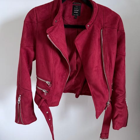 ONLY Biker jakke størrelse 40.(passar en M-L) Jakken har glidelåslukking og flere lommer med glidelåsdetaljer. Materialet har en semsket tekstur.