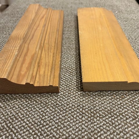 Hvitmalt på innsiden, trenger ny pakning hvis det skal brukes på nytt som vindu. Passer nok best som teak materialer til båt oppussing. Pris pr stk.