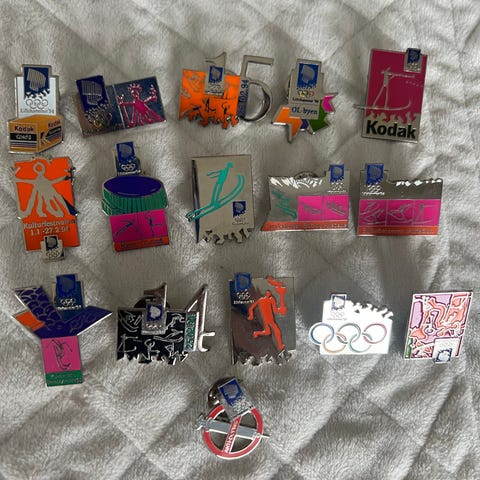 Selger en samling originale OL-pins fra de XVII Olympiske vinterleker på Lillehammer 1994.