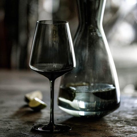 4 stk Magnor Glassverk Noir bobleglass laget av røykfarget glass. Designet for servering med et moderne uttrykk. Pris pr stk kr 350,-.