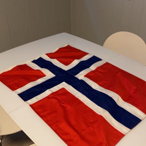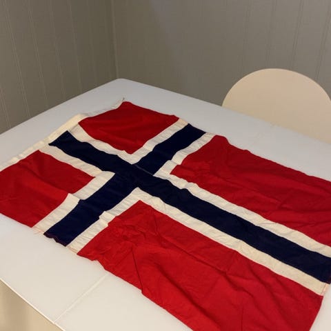 Selges. Må hentes asap. Stor flagg som man kan henge opp på verandaen/ved ytterdøren.