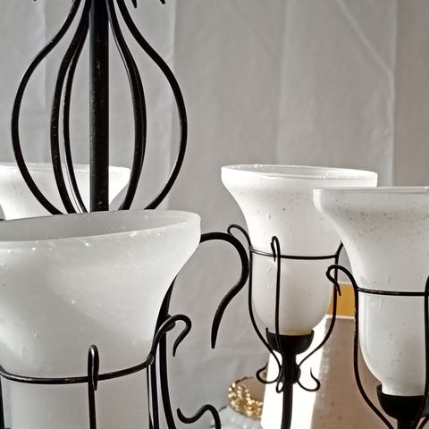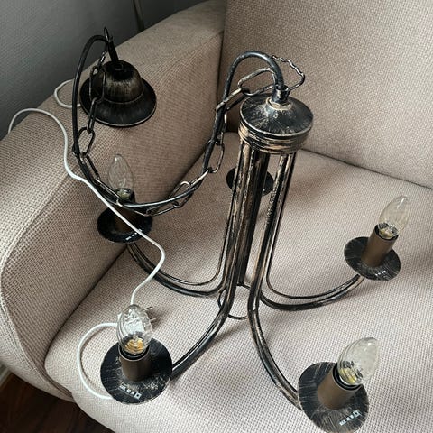 Taklampa i sort metall, 50 cm høy, 45 cm i diameter.