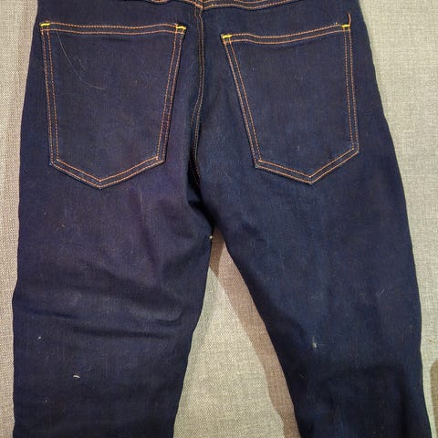 Colt Protective Jeans i blå denim for herre. Laget av 100% bomull med innerfôr av aramid beskyttende fiber. Størrelse W30 L34. Designet for å gi ekstra beskyttelse ved bruk.
