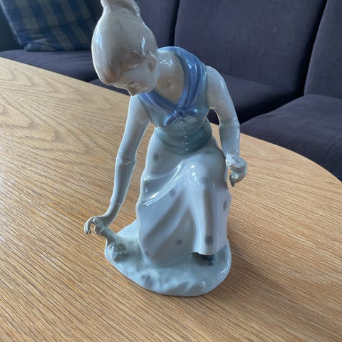 Selger en porselenfigur fra Royal Copenhagen med motivet Den Lille Havfrue.