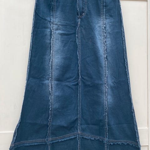 Denimskjørt / dongeriskjørt med påsydde (broderte) flamingoer 🦩 🦩 🦩
