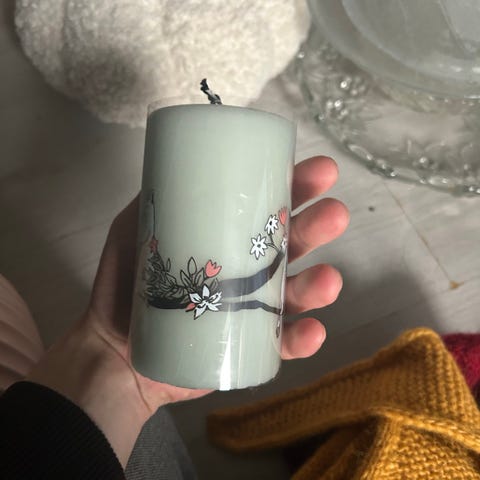 Ubrukt Moomin & Amnesty international emalje kooo 3,7 dl med lys. Brenne tid 4,5 time.